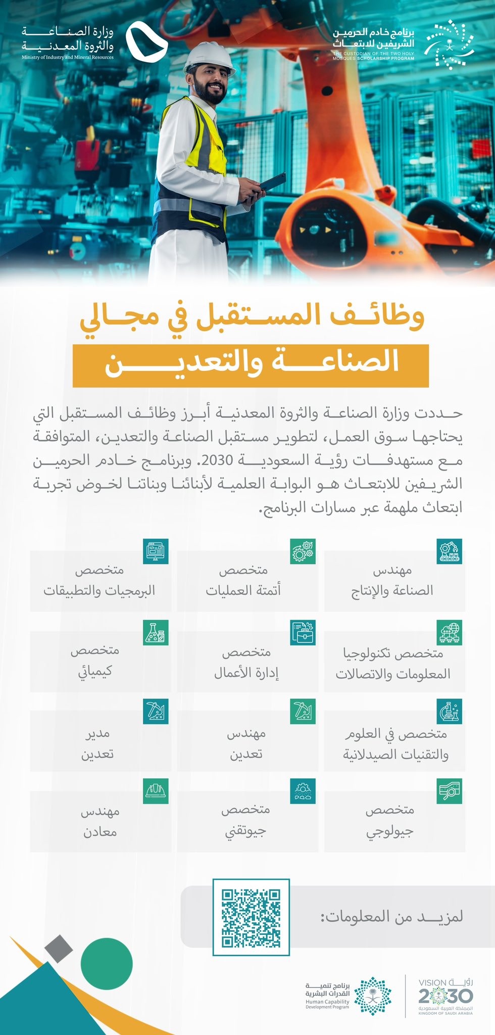 رفع كفاءة رأس المال البشري وتحقيق التنمية المستدامة. -المساهمة في تعزيز قدرات المملكة في البحث والتطوير والابتكار وريادة الأعمال في المجالات ذات الأولوية. -المساهمة في إعادة تأهيل وتعزيز القدرات في تخصصات علمية مختلفة لتوفير كوادر وطنية موهوبة وخصوصًا في القطاعات الواعدة للمشاريع النوعية التي أطلقتها رؤية المملكة 2030